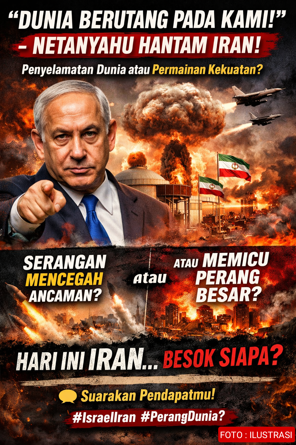 Netanyahu Klaim Serangan ke Iran “Selamatkan Dunia”: Fasilitas Nuklir Dihantam, AS Terlibat!